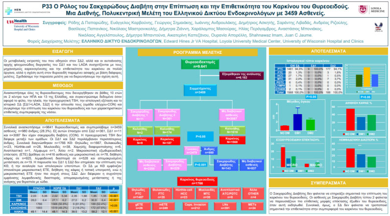 Ο Ρόλος του Σακχαρώδους Διαβήτη στην Επίπτωση και την Επιθετικότητα του Καρκίνου του Θυρεοειδούς. Μια Διεθνής, Πολυκεντρική Μελέτη του Ελληνικού Δικτύου Ενδοκρινολόγων με 3459 Ασθενείς